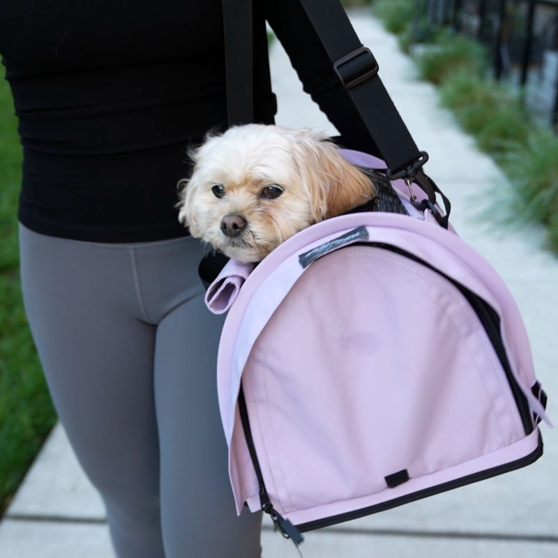 The light-weight design made it easy to use the carrying handle and the shoulder strap. Even though Elsie is near the top of the weight limit for this bag, the bottom was sturdy and the bag didn't show signs of strain. The mesh and zipper even held strong against Elsie's nervous digging.